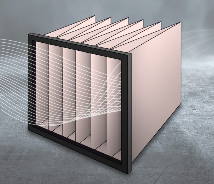- Die in den Filtertaschen eingesetzten Abstandshaltern, sorgen für eine gleichmäßige Luftführung durch den Filter, damit die Taschen in der ganzen Länge mit Staub beladen werden können.